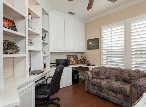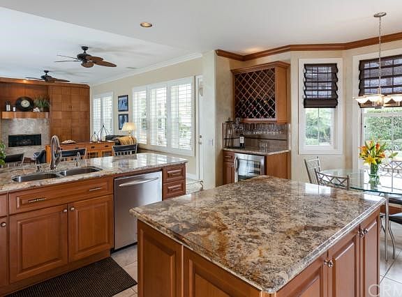 Located in central Coto de Caza this Classics home offers 3257 square feet of living space including four bedrooms, plus second floor bonus room, plus main floor office, three bathrooms, formal living and dining rooms, oversized family room and family kitchen. Tastefully decorated and impeccably maintained, this home is upgraded with quality features including crown moldings, framed and shuttered windows, fresh paint, polished tile flooring, built-in family room entertainment center, built-in office work center, custom kitchen, and remodeled bathrooms. The family kitchen is wide open to a huge family room and features granite counters on custom Alder cabinetry with inlaid tumbled travertine backsplash, brushed nickel hardware, center-island and breakfast bar, generous cabinet storage space plus walk-in pantry, and a full range of stainless-steel appliances. The 9570 square foot lot features a private East-facing back yard with swimming pool and spa, large sun-trellis covered patio with outdoor sound, fire-pit and sitting bench, BBQ-island, grass, and mature landscape with lemon and avocado trees. A three car garage (2 plus 1) with finished floor and storage space, along with a full-sized driveway provide ample parking for guests and family.