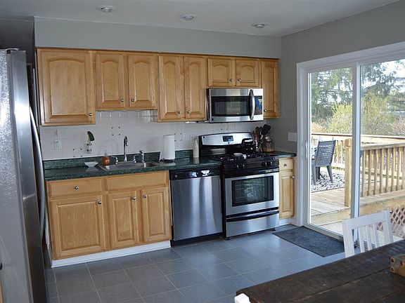 Sweet 3bd/2ba Cape overlooking the water in Miami Beach Estates. Renovated Kitchen with large eat-in area, NEW stainless steel appliances, ceramic tile floor, slider to fenced yard and deck overlooking the "Old Troy Reservoir". Hardwood floors throughout, finished area in basement with full bath, second full bath on first floor. Central Air, Furnace 2009. Private neighborhood and cul-de-sac. Go fishing or watch the wildlife on the pond from your deck!