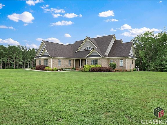 Beautiful custom built home in a serene setting on almost 5 acres. Built in 2019, this one level home is in pristine condition! The open living spaces are spacious and provide a great space to host friends and family. There are wide plank engineered hardwood floors throughout, brick surround fireplace in the living room, large dining area that seats 8+. The kitchen has custom cabinets and so much space, walk-in pantry with custom shelving, convection microwave, center island, separate cooktop and wall oven. The laundry room has custom built-ins for added storage. Relax on the back porch that overlooks the yard and stocked pond! If more space is desired, the unfinished basement is ready to be completed. Located 15 minutes from Athens, and only a few miles to the charming community of Winterville. This home in this setting are the perfect combination!
