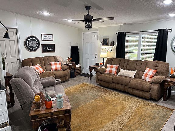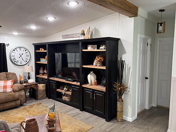 Newly remodeled in 2023, Excellent Condition!! 3bd., 2ba., Luxury vinyl floors, new paint, light fixtures, counter tops, dishwasher, and vanities, etc... Eat in Kitchen with bar. Roof approx. 10 years old and hvac approx. 6 years old . Partially fenced yard on approx. 1.27 acres in city limits. NOT on a permanent foundation. (Agents: see remarks on things that do not convey)
