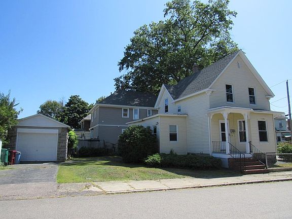 Wonderful opportunity to own this spacious Colonial in desirable Highlands neighborhood with easy access to highways, restaurants and shopping. Features include 3 bedrooms (2 with walk-in closets) , NEWLY UPDATED bathroom with oversized walk-in shower, open concept living room and dining room area, galley kitchen that opens to pretty sitting room and den with new carpeting. Large 1st floor laundry room with extra storage closet is an added bonus! Additional updates include roof (2015), heating system (2004), vinyl siding, replacement windows, some fresh interior paint and home was fully insulated in 2004 through MASS Save program. Great off-street parking, one car detached garage and storage shed compliment the pretty corner lot. All appliances stay and most are newer. This home is just awaiting your personal touches and has lots of potential for it's new owners.