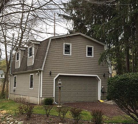 Home also has a 5th bedroom which is a partially finished master suite, with master bathroom that has plumbing, but is unfinished. There is also a detached 2-story garage with partially finished loft with skylights. Also has a gazebo & storage shed. Garage parking for 4 cars. Home is in Upper Saddle River (Zillow shows Saddle River).