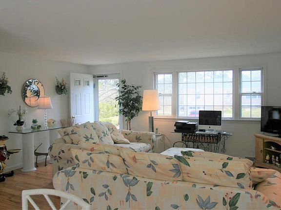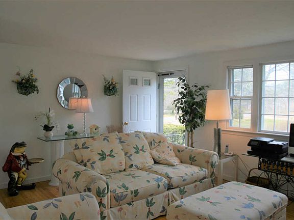 Imagine living on Bluebird Lane, steps away from a private beach on beautiful Buck's Pond. Other association beaches on the pond a short walk or drive away. White walls, hardwood floors, recent updates (roof, double-walled oil tank, heater, washer, dryer, hot water heater), and excellent maintenance history make this three-bedroom home ready for immediate occupancy. Furniture, regulation pool table, extras. Enjoy meals in the dining area, cookouts on the large deck, and wood-burning fireplace in the living room. Dry full basement and garage recently painted electric garage door opener. Near schools, several ocean beaches, Community Center, shopping, dining, Cranberry Golf Course, tennis and pickleball courts in Harwich and Harwich Port. Similar homes this close to Buck's Pond generate $1,800/week rental.