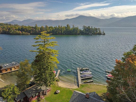 Rare and coveted combination of a year-round home with lake view from all living levels & lake access with dock. Sandy beach, raft and docks shared w/only 8 other owners & just 250' from the house. Many recent major improvements include a brand new kitchen with granite counters and top of the line fixtures open to the dining area and lake view. Brand new baths also have top of the line fixtures including a spa soaking tub with heated backrest. Open Living dining concept with a stone FP. Open deck and master BR balcony over look the lake. Lower level family room and study open to a screen porch also with lake views. Updated mechanicals including AC, new roof, freshly painted. No limits on boat size, just what will fit. slip 10 x25. No association rental restrictions. Very low HOA.