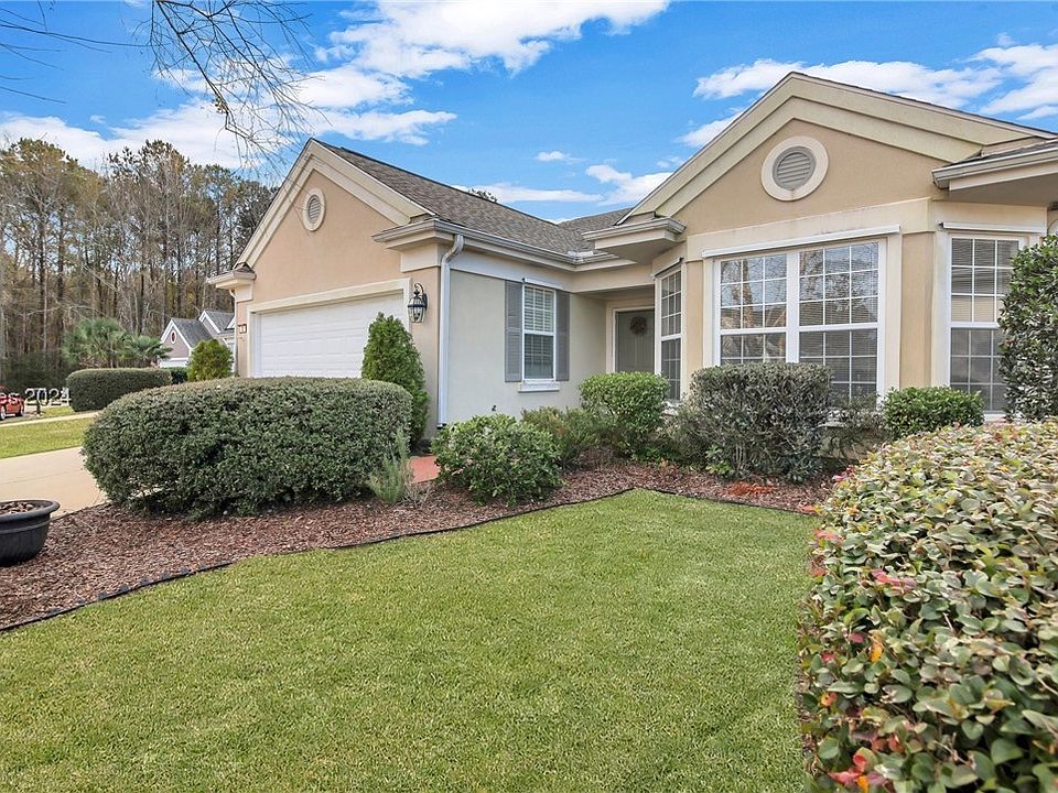 Rare Seagull floor plan ready for immediate occupancy! Ideal location on a cul-de-sac court. Interior features entry into the formal living/dining room w/electric fireplace; Great Room, open to the kitchen, has sliders leading to screen porch; eat-in kitchen w/stainless appliances, prep island, pantry; large master suite & bath w/separate shower, soaking tub; guest bedrooms, one w/office built-ins, adjoin full bath; hallway to garage has cabinets & sink; garage w/pull down stairs for overhead storage. Freshly painted interior awaits your personal touches. Come & enjoy all the amenities this active adult community has to offer.