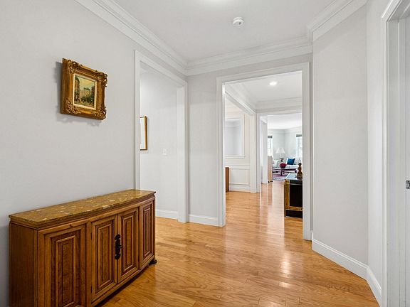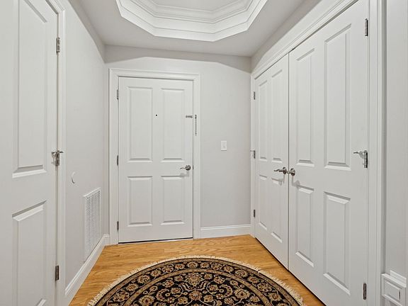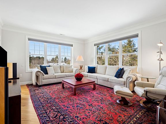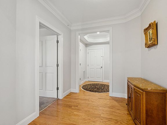 Stunning top-floor corner unit in the highly sought-after Braemoor Woods community! From the moment you enter inside, you'll be impressed by the finishes & exceptional amenities throughout the entire complex. The open-concept layout flows effortlessly, with soaring ceilings, hardwood floors, and crown molding throughout, making this 2-bed, 2-bath condo truly special. The spacious living room is bathed in natural light, thanks to an abundance of windows, & opens up to a private balcony. The kitchen features granite countertops, SS appliances, and ample cabinet space. A large dining area is ideal for hosting gatherings, and a dedicated home office/den offers versatile space for work or relaxation. The primary bedroom includes a walk-in closet & an en-suite bathroom. A 2nd spacious bedroom, an additional well-appointed bathroom, & a laundry room complete the interior. This vibrant 55+ community offers everything you need for a convenient & enjoyable lifestyle, including a clubhouse, outdoor grills and fitness center. The building has secure entry, and you'll have one parking space with an option for an additional garage space ($10/month). Extra storage in the basement adds to the convenience. Located near tax-free shopping & with easy access to Route 93 & 213, this is the ideal place to call home. Pets are welcome, though must be registered & approved by the management company. While the community is primarily 55+, 10% of the owners can be under 55.