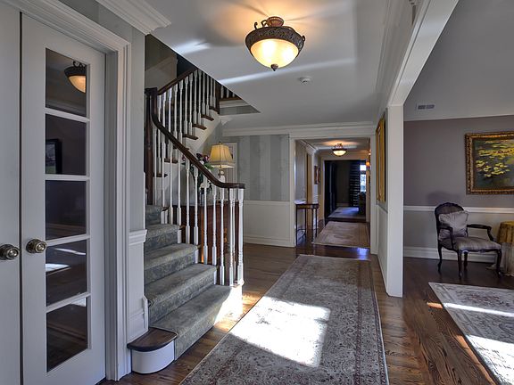 Elegantly appointed 1910 Colonial is situated on a half acre of professionally landscaped property, located on a quiet and desirable cul-de-sac near all one could need in Westfield. Renovated to perfection for 21st century living, the masterful upgrades have retained the stunning architectural details of custom moldings, millwork and hardwood floors found throughout the home. A classic columned front porch invites your guests into the gracious center hall foyer, where the home opens into a handsome study/den with a walk-in closet. The formal living room features a vaulted ceiling, chair rail molding and welcoming sun-drenched windows. The banquet-sized formal dining room has traditional wainscoting, deep crown moldings and chandelier medallion. The home flows back into the spacious family room with a coffered ceiling, wood-burning fireplace with carved mantel and a wall of windows. Double French doors from the family room lead to a relaxing blue stone patio in the deep, level and private yard, with easy access to the detached 2-car garage and extra parking in the driveway. The beautifully updated gourmet kitchen is bright and airy, featuring custom cabinetry, granite counters, tile backsplash, large seating center island, stainless steel appliances and breakfast area with double doors to the patio. The master bedroom is conveniently located on the main level, featuring a huge walk-in closet and luxurious spa bathroom. Two powder rooms, mudroom and laundry room complete the main level. The second floor offers five additional bedrooms, one with a private bath, all with walk-in closets and 2 full hall baths. The lower level offers a recreation room, gym area and great storage space. With the impeccable professionally decorated interior, this magnificent 6 bedroom, 4.2 bath home is ideal for entertaining on a grand scale and ready to enjoy a comfortable contemporary lifestyle.