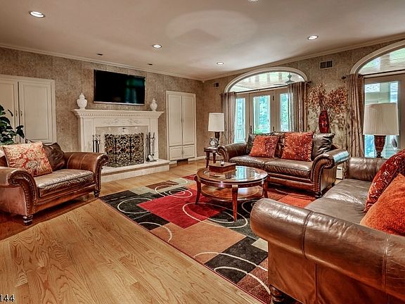 A spectacular custom Colonial on 1.25 acres of professionally landscaped property along a cul de sac of luxury homes in the desirable Basking Ridge. The expansive floor plan offers 2 primary bedrooms. Elegant foyer opens to family rm with gas fireplace & triple doors overlooking a 3 season rm. Spacious gourmet kitchen, 2 dishwashers, a commercial double oven & vent, Sub-Zero refrigerator. Laundry rms on 3 levels. A primary bedrm on the main floor has two full baths & sliders leading to a deck. Upstairs, 2nd primary bedrm has a spacious bath & 2 enormous walk-in closets. 2nd level has two sizeable en suite bedrms & huge bonus room. Incredible finished basement with a theater, wet bar, recreation rm, 2 extra rms with 2 bathrooms. Beautiful outdoors with 2 large decks, Pavillon over patio, grill & fenced yard. Great location to major highways and downtown Basking Ridge.