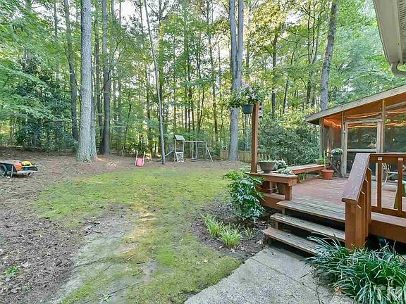 Welcome to Woodcroft! Tucked in a cul-de-sac and shaded by mature trees, this colonial home has a great floorplan for entertaining or separate spaces to relax, watch TV, home office. Enjoy the screened porch and large deck that overlooks the private backyard. Kitchen has vaulted ceiling and skylight that adjoins a spacious breakfast area. You'll love the miles of trails that snake through the neighborhood and the close proximity to grocery stores, restaurants and downtown Durham.
