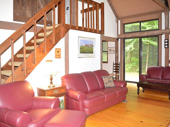 Country post and beam home on a corner lot with 1.8 acres in Eastman! The great room features a cathedral ceiling with brick fireplace, yellow pine floors and double sliders to a large deck overlooking an attractive yard. The efficient alley kitchen has a nice display of windows to enjoy the natural setting. Bedroom en suite on main level plus a ½ bath with laundry. The upper level has a large loft area plus 2 more bedrooms with a bath. Large shed for storage, ideal for an active lifestyle. Come enjoy all the Eastman Community has to offer in this four season community, including Pickleball, tennis, golf course, six sandy beaches, lake activities and groomed cross-country ski trails. All this with easy access to I-89 and the Upper Valley and Dartmouth / Lake Sunapee Region.