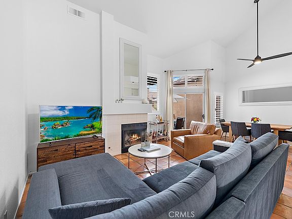 Located in Dana Point's rarely available Silvertide community, this stunning 2-bedroom, 2-bathroom condo offers the perfect blend of coastal living and townhome-like spaciousness. As you step inside, you are greeted by soaring vaulted ceilings and an open, airy floor plan. The kitchen has been tastefully updated, featuring quartz counters and white tile backsplash, stainless appliances, and a breakfast bar. The kitchen opens to the dining area and living room, providing the ideal layout for entertaining. The spacious living room boasts a cozy gas fireplace and a sliding door that leads to one of the two balconies in the home, allowing for seamless indoor-outdoor living. The vaulted ceilings continue on into the downstairs primary suite, which offers ample space and two closets, including one walk-in. The updated primary bath showcases dual sinks, an additional vanity area, new lighting, fixtures, and mirrors. Upstairs, you'll find another well-appointed bedroom with its own updated en-suite bath, making it an ideal guest suite or home office. Enjoy ocean breezes and serene hillside views from the upstairs balcony. Additional recent upgrades include new gorgeous vinyl plank flooring, neutral interior paint throughout, plantation shutters, and all new ceiling fans, lighting, and more. For added convenience, there is an attached one-car garage with direct access, along with an additional covered driveway spot. Amazing location situated just across the street from the shopping, fine dining options, and more that Ocean Ranch has to offer, with the trail leading to Salt Creek Beach a just a stone's throw away. Silvertide also offers its residents a resort style pool and spa, with sidewalks and plenty of grassy areas and guest parking throughout the community. This is an extraordinary opportunity to own a meticulously maintained and upgraded condo in a prime Dana Point location.