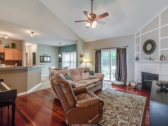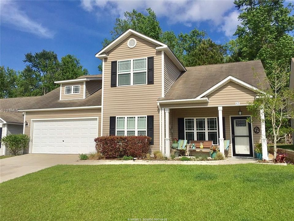 GREAT FLOORPLAN. MOVE-IN READY. CHEERFUL HOME. So much to offer including 1st floor master w/ newly updated bathroom. Great room w/ gas fireplace + dining room & eat-in kitchen. 4 Bedrooms or 3 bedrooms w/ spacious bonus room. Light & bright w/ fresh paint. New black appliances in kitchen. Many closets + large pantry. Spacious private backyard w/ wooded views. Quaint front porch. 2 car garage. Newer HVAC & hot water heater. Terrific potential - great investment or starter home! Low HOAs. Zoned for River Ridge Academy & May River HS. What is not to love? WELCOME HOME!