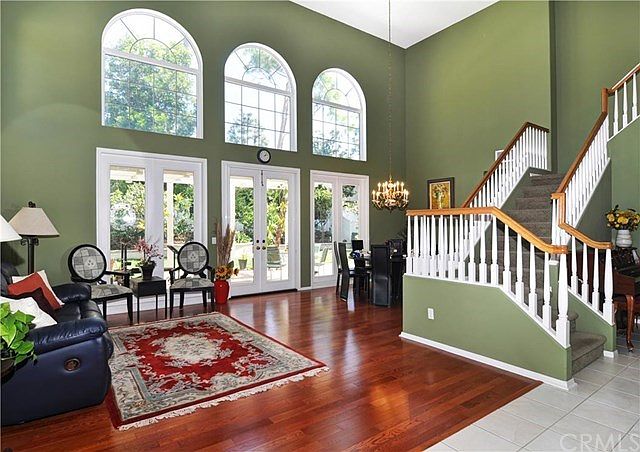 No Mello Roos beautiful home located in an exclusive enclave in University Park!Highly desirable detached SFR offers 5 bedrooms,3 baths,direct access 3-car garage with spacious driveway on a quiet cul-de-sac.Vaulted soaring ceilings greet you at the entry and living room.Cozy family room with fireplace is next to kitchen.One bedroom and one full bath downstairs along with a separate laundry room.Professionally landscaped include assortment of fruit and vegetable trees.Large backyard provides great entertaining area for you to enjoy.Upgraded travertine-like tile in hallway and kitchen, wood floors on first floor,customized carpeted stairs to second floor, wood plantation shutters, double-paned vinyl windows, designer painting throughout.Remodeled upgraded granite counter-topped kitchen ideally opens into the island nook,family room,upgraded cabinetry, newer appliances,large walk-in pantry and a beautiful bay window.Upstairs features 4 bedrooms with substantial closet space. Large master bedroom includes his and her mirrored walk-in closets, spacious oval tub and separate tiled shower. Community center provides nice swimming pool, spa, tennis courts, and BBQ, etc. Walking distance to award-winning schools. Easy access to freeways and shopping.Don't miss it!
