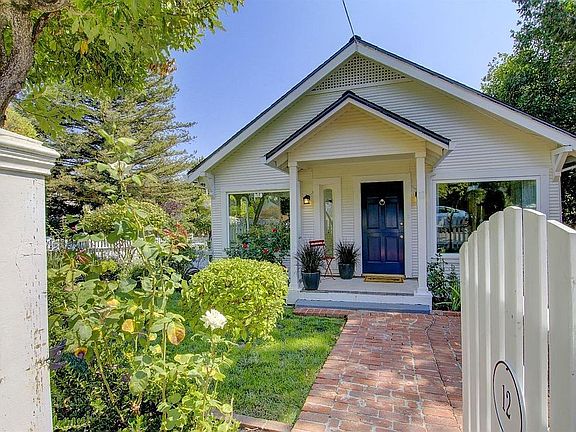 A classic white picket fence frames this charming cottage. Enter the garden gate to enjoy lawns, patios and mature plantings. This 3 bd/2 ba home features versatile living spaces indoors and out. Picture windows bring light in, original wood flooring, tiled floors and vintage details add character and grace. In the rear yard, an attached space has its own sink, laundry area and storage what a perfect place for exploring creativity, hobbies or a playroom.