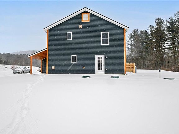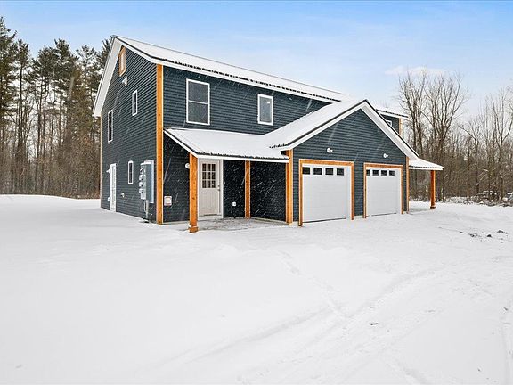 Stunning 2-bed (with additional family room!), 3-bath new construction townhome offering modern living with an open-concept kitchen, hardwood maple cabinets, concrete countertops, and Energy Star appliances. Walk into the unit from a covered, concrete porch to a laundry room, half bath and 2 large storage closets. Set farther back you will find an open living space featuring waterproof engineered oak hardwood flooring. Head upstairs on solid red oak treads and matching handrail to a second floor that consists of 3 generously sized rooms, all plushly carpeted. The primary bedroom boasts it's own private half bath. The other upstairs rooms share a bathroom featuring a full size tub and shower combo. All upstairs bathrooms feature waterproof engineered oak hardwood. The home offers highly coveted heating and cooling via cold climate heat pumps which can be found on the main level and in each upstairs room. The home also provides backup electric baseboard units, and modern insulation. Enjoy the comfort of an insulated garage, ample parking, and outdoor space. Do you prefer not to spend your time on exterior home maintenance? Enjoy the low maintenance that a metal roof and vinyl siding provide. This unit shares 1.14 acres of common land with only one other unit, unit B. Located 30 minutes from Burlington and 25 minutes from Middlebury. Owner's wife is a licensed real estate Broker. Waste Water permit for property allocates for 2 bedroom home, please note floor plans for layout.
