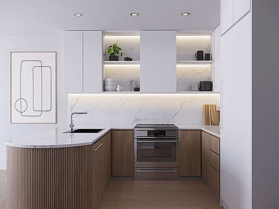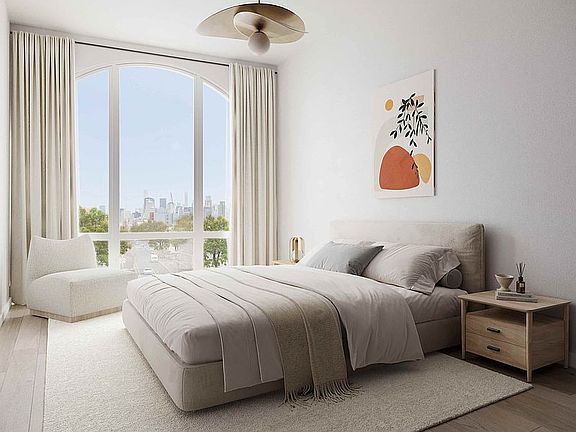 Residence 2A is an elegantly designed one-bedroom, one-bathroom abode that boasts a spacious open concept layout. This magnificent home features a northern exposure, affording breathtaking views of Midtown Manhattan through the floor-to-ceiling windows, as well as a one-of-a-kind balcony, perfect for taking in the stunning cityscape. The kitchen is a culinary gem, with features that are sure to impress even the most discerning of chefs. From its fully integrated appliances from renowned brands like Cafe, Fisher & Paykel, and Forte, to its ample counter space and storage options, cooking and meal preparation have never been easier or more convenient. The kitchen boasts stunning details such as white oak fluted millwork, white lacquer cabinetry, and Calcatta Silver countertops and backsplash. To add to the ambiance, underlighting is implemented throughout, making this kitchen an inviting and sophisticated space to cook and entertain in. The living and dining room is a testament to luxury and sophistication. The elegant appointments, such as wide white-oak plank floors, create a warm and inviting ambiance that is perfect for entertaining guests or simply unwinding after a long day. The ample natural light that floods the space through the floor-to-ceiling windows and unique balcony adds to the allure, making this the ideal place to host dinner parties or simply relax with a book. Off the living space you will find the primary bathroom, with its Aria White natural stone encased shower and bathtub, Spiga Butan fluted wall panels, and black matte fixtures, provides the ultimate in relaxation and rejuvenation. The primary bedroom is a serene sanctuary that provides a peaceful retreat from the fast-paced city life. With its ample layout and large windows, this room is filled with natural light and creates a calming atmosphere that is sure to leave you feeling refreshed. In addition to the spacious sleeping quarters, the room is equipped with a substantial closet, offering a wealth of storage options. Furthermore, there is also room to furnish the space with a home-office, making it the perfect combination of comfort and functionality.