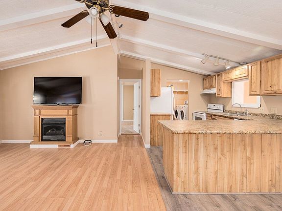 This move-in ready home in Fieldstone Village MHP is a must-see! Enjoy single level living with a spacious kitchen, open concept living and dining area with cathedral ceilings and updated laminate flooring. All three bedrooms are spacious, including the primary bedroom with an ensuite bathroom. The backyard is great for entertaining, with plenty of room to enjoy the outdoors and a storage shed for extra storage. Don't miss out on this beautiful home - come see it today!