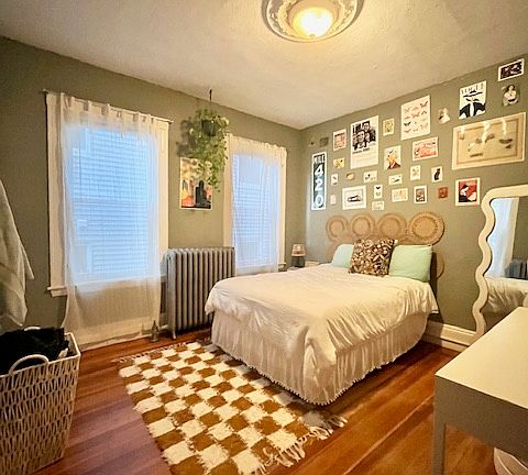 Updated eat in kitchenHardwood floorsUpdated bathroomBay windows