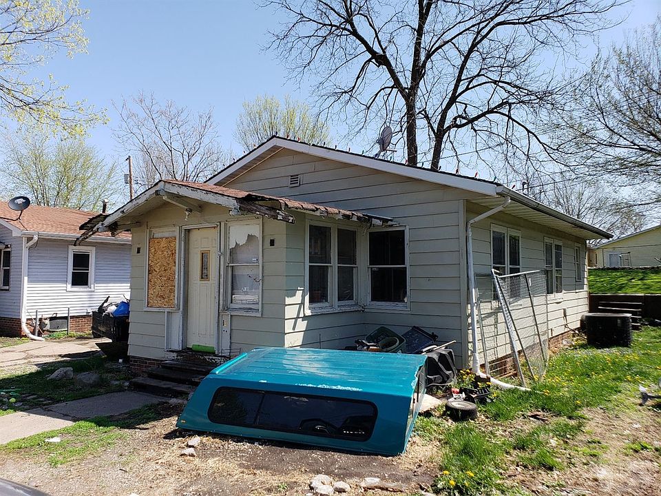 2 Bedroom, 1 bath with aluminum siding in Bungalow Court with front porch & full basement. Selling as is for cash only.