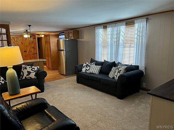 Welcome to your easily maintainable 2 bdrm, 2 full bath w/ attached Garage, 14X70 single wide home. This corner lot is situated in the Marilla Country Village giving you that country like feeling just minutes to all your conveniences in the Town of Alden. Brand New Appliances (8/2020) with a newer high efficiency furnace and central A/C, updated pex plumbing, a shingle roof, and full house freshly painted (2020). Appliances and some Furniture (purchased in 2020) included in the sale, making this an easy move in situation for any buyer! Located directly across from the community mailboxes/ parking you won’t find a better located property. Find us on your GPS located at 12 Maple Ave, Alden, NY 14004.