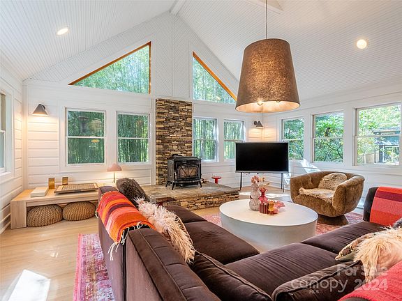 Welcome to a whimsical retreat where luxury meets artistic charm. Fully remodeled in 2024 with new plumbing, electric, siding, drywall, bathrooms, and more. The heart of the home is a chef’s kitchen, redesigned and expanded by local artist Randy Shull. This timeless space offers quartz waterfall island, bamboo cabinetry, high-end appliances with an induction stovetop, 2 Miele ovens, and Bosch dishwasher. The airy living room with vaulted ceilings and windows everywhere is bathed in natural light. You'll love the charming guest cottage remodeled in 2019 with kitchenette, large fridge, granite tabletop, and full bath. Additional backyard structure with cozy loft serves as a gym, adding flexibility to the space. Adjacent buildable lot is included with lots of parking. This home is a perfect blend of elegance, comfort, and artistic expression ideal for those who appreciate beauty in every detail. Walkable location to downtown Asheville.