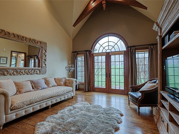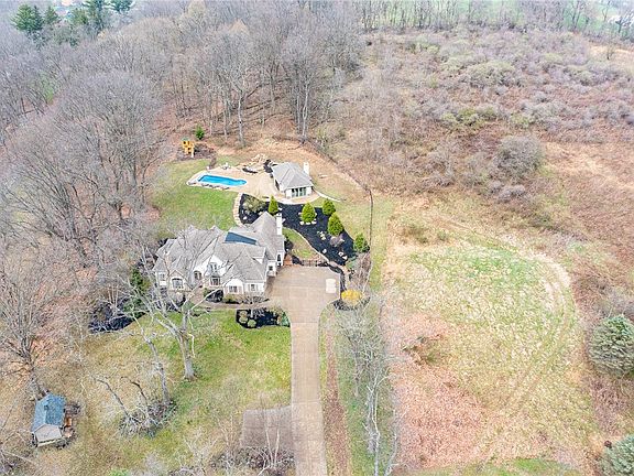 Escape to the country close to everything. Custom home on 5 private acres beautifully situated on a cul-de-sac. Architectural details & soaring ceilings, make this large home feel warm & cozy. Huge center island EIK w/stone fireplace, 2 sinks, 2DWs, & Dacor gas stove will make the even a pro chef happy. Door to vaulted covered porch with fireplace for cocktails or smores. 1st fl master wing with vaulted ceiling, fireplace, doors to separate patio, marble bath w/soaking tub, shower and dressing room vanity area. LR w/ vaulted ceiling and fireplace. Den w/glass doors, beamed and tiled fireplace & wall of bookcases. Stunning beveled glass drs entry way. Elegant frml DR. 3BRs and BA + addl. balconied room up. Walk out LL perfect for in-law suite, w/2 BRs, BA, huge LR. Amazing glass walled pool house with vaulted fl to ceiling fireplace, BA, and kitchen area, off the inground pool & waterfall/pond will provide for ultimate entertaining & relaxation. Montour Trail just access across the st.
