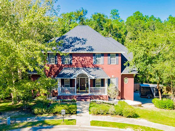 Located on quiet cul-de-sac, 0.2 miles from bay, this stately home is close to Fairhope Yacht Club, schools, and is a mile from downtown Fairhope's shops and restaurants. Sitting on OVER an acre, on largest lot in the neighborhood, this home is 4,469 SF, including a 1,071 SF basement. Walking through the leaded glass front door, you'll find a grand staircase- w/ a formal dining area on one side and office/flex space on other. The bright living room has as fireplace, built-ins, wet bar and walks out to the top deck. In the kitchen, find plenty of counter space and cabinetry, a center island, eat in breakfast bar, double ovens, and gas range. The large butler's pantry is a walk through to your laundry room. Off the kitchen, looking out to the backyard, is a breakfast room w/ an additional seating nook. The downstairs master walks out to the upper back deck and has an ensuite bathroom, w/ dual sinks and vanity area, double closets, whirlpool tub, separate shower and toilet closet. Upstairs you'll find 4 additional bedrooms and 2 full bathrooms. One bathroom is a jack-n-jill between 2 of the bedrooms, and all of the bedrooms have large closets and additional storage areas. The bonus area of this home is a sizeable walk-out terrace, basement. There's a large central area w/ built in shelving, that could be a media, game or playroom; a kitchenette, full bath w/ stand up shower and 2 additional areas, that could function has bedrooms. There are a ton of possibilities in this space. The basement walks out to lower screened-in porch and there's an additional deck area in the yard. The large lots extends past the fence and ensures your privacy and will maintain your wooded view. The 2.5 car garage has 2 technology friendly garage doors (2021), new epoxy garage floor (2021), side entry door, built-ins and plenty of room for storage. Additional features include: Irrigation system, French drains, helical pier system (w/ lifetime guarantee) and new Bronze fortified roof (2021).