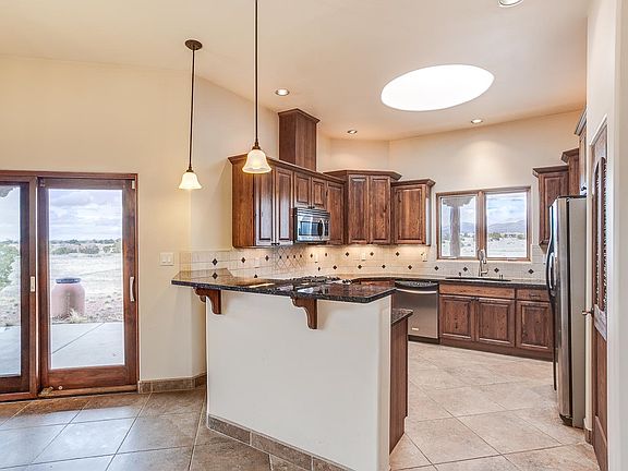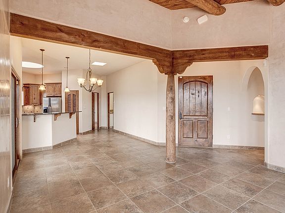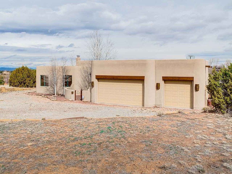 This Eldorado home is truly a gem. Situated against a green belt, the home has beautiful views from every window. Split floor plan, diamond plaster, granite kitchen counter tops, custom hickory cabinets, stainless appliances, kiva fireplace, vigas and tongue and groove in living room ceiling. Walk in closet in Master, jetted tub, spacious rear portal. And a 3 car garage, which is extremely rare. Home is move in ready. This charming house will not last long.