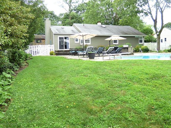 Renovated expanded ranch with million dollar backyard! Featuring 3 bedrooms, 1 1/2 baths, new kitchen with custom tile, stone counters, stainless appliances, formal dining and living room, family room with fireplace, and full basement. Home boasts gleaming hardwood floors throughout and stellar backyard: in-ground pool, paver patio, professional landscaping, outdoor barbecue area, fence and shed. This gem won't last!