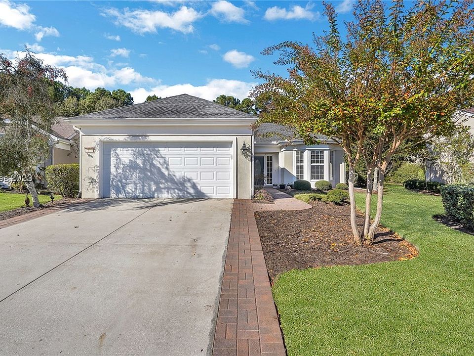 Popular Pelican model on expansive 0.42A lot - ideal for a pool or garden enthusiasts. Wood floors in common areas, carpet in bedrooms. Granite counters, bay window in breakfast nook. Primary suite boasts bay window, raised vanity, separate shower, and a generous walk-in closet. Den/office can be used as a 3rd bedroom. Entertain on the covered 14'X25’ lanai with wooded view. Extra cabinets in laundry room. Extended garage with pulldown stairs for bonus storage. Don't miss out! Come enjoy the 55+ Sun City lifestyle.