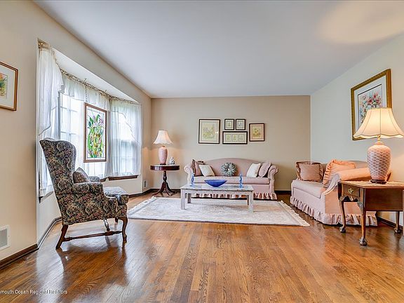 Situated on Park like property in sought after Oak leaf estates in the heart of Manalapan Township. this 4 Bedroom 2.5 bath Jefferson model features Paver walkway, formal Living and Dining rooms w/hardwood flooring. Updated eat in kitchen w/newer appliances. Family Room w/oak hardwood flooring, wood burning FP w/brick surround. Master bedroom w/walk in closet and updated full bath. Spacious bedrooms all w/hardwood flooring under carpet. Full basement. Multi level deck. Private level back yard!