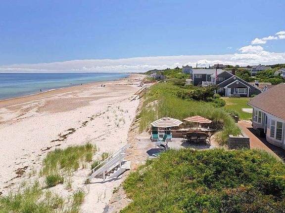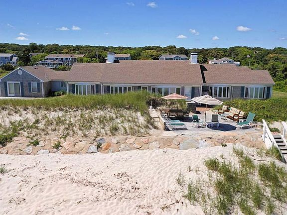 Bayside Oasis!! 200 ft of direct frontage of sandy shoreline on Cape Cod Bay. Main house is replete with 4BRS and 3.5 Baths.Primary bedroom is ensuite with spacious tiled salon bath, multiple closets, bank of windows with water views and adjacent office/sitting room or perhaps home gymnasium. BR2 features fireplace with built-ins, bay window and private full bath. BRS 3-4 share a full bath. LR with fireplace and window group offering views of the beach and Bay. Kitchen DR combo features include granite counters, custom glass cabinetry, breakfast bar and generous dining area with exit to bayside patio with 180 degree vista views with private stairs to beach! Attached to garage with private entry is adjacent separate guest quarters with 2nd kitchen, LR and fifth BR. FHW by gas, private water and septic (passed Title V report available). 2 Car attached garage, paved driveway and professionally landscaped yard with numerous ornamentals. Call today to see this special offering!