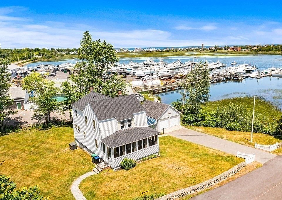 This diamond in the rough colonial sits on a prime flat lot (.92 Acres) with a stone wall and 50 ft of marsh frontage on Green Harbor River. The home has been enjoyed by the past owners for over 57 yrs and is nestled in the Green Harbor Yacht Club & Burke's beach neighborhood with nearby restaurants, & coffee shop. Imagine sitting on the front covered porch, feeling the coastal breeze as you watch the boats coming in and out of the harbor. Large living room with double sided gas fireplace; French doors open to a glass sunroom which directly overlooks breathtaking views of Green Harbor & beyond to the Atlantic Ocean. Eat-in kitchen with pantry is waiting for your ideas. Hardwood floors throughout most of the home, water views from all 4 bedrooms on second floor. 2 car detached garage, paved driveway, Town Sewer & Generator. Bring your architect or builder to get an idea of its full potential and build some sweat equity. The home is adjacent to Marginal St with homes of much higher value