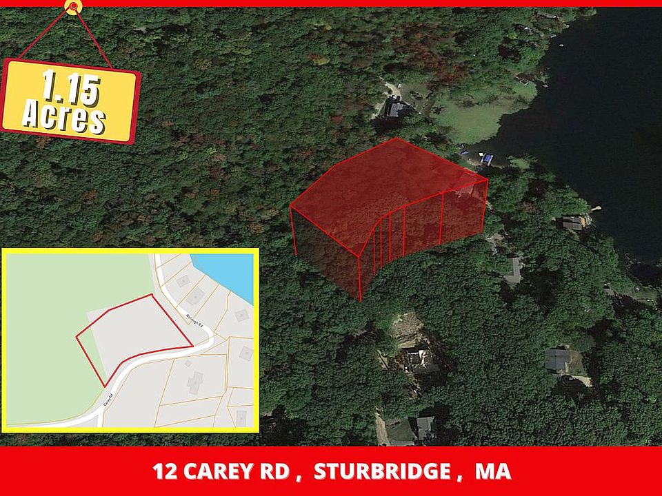 Discover the abundant beauty of Central Massachusetts and buy this 1.15-acre gem hidden deep in the lush foliage of Worcester County! Nestled along Carey Rd, this lot comes with a convenient road access nearby and just a few yards from the majestic waters of Leadmine Pond! Just 7 miles west of your location is an old mill town that sits dead center of the Massachusetts, Connecticut and Rhode Island state area – Southbridge. The Town is in close proximity to Routes 90, 20, 84 and 395 with convenient access to Hartford, Springfield, Providence, Boston, and Worcester. Out here, nature lovers can go fishing or camping at nearby Webster Lake, walk the beautiful trails at Capen Hill Nature Sanctuary or spend a day at one of the local orchards where you can pick your own fruit. On the outskirts of town, visitors will find fun activities and things to do like horse shows and 18-hole championship golf. Don’t even think of missing out! Pricing Details: Cash: $ 28,900.00 Terms: $16,073 Down, $350 Monthly Property Details: Parcel Number: STUR-000193-000000-004413-000012 Property Address: 12 CAREY RD County: WORCESTER State: MA Parcel Size: 1.15 Acres City: STURBRIDGE Zip Code: Legal Description: N/A Center GPS Coordinates: 42.06518345402208, -72.12793474406588 Corner GPS Coordinates: 42.06474528255957, -72.1281977263716 42.064920514109154, -72.12804143097208 42.064979713847684, -72.12793936050709 42.06507916928417, -72.12724719516633 42.06548172541168, -72.12769056374866 42.06536332681562, -72.12815307054315 42.06515494475023, -72.12849755836253 Zoning: Rural Residential District Access to Property: Paved Elevation: 830.1 ft Terrain: Slope