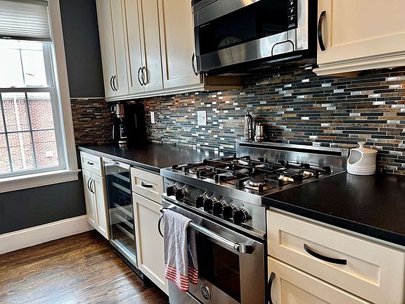 For sale by the original owner. Open concept in a great location. Gourmet kitchen includes granite counters, wine cooler, Bertazzoni range and Electrolux appliances. Expansive island has seating for 4+. Great for entertaining. The kitchen flows into a bright and sunny living area with a gas fireplace and 10 ft high ceilings. Unique room off kitchen that is used as a large pantry and coat closet but could be an office/small bedroom.The condo features premier custom carpentry including crown molding and high baseboards. Dark walnut hardwood floors, as well as polished chrome fixtures. Unit has central air. 2 bedrooms (1 primary) and 2 full baths,with gorgeous marble tiling, glass showers, and rainfall showerheads. Custom closets in each bedroom.Deck with privacy and gas-piping for a grill. Includes in-unit new washer/dryer. Deeded storage in basement and deeded parking. All utilities are accessible in unit (water, breaker box and furnace filter rack).