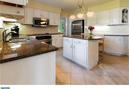 Better than new! This MINT custom home offers 5 Bedrooms, tons of recent updates plus a gorgeous Sun Room (not part of sq. footage) and best of all is situated in a quiet cul-de-sac just over the border line of Moorestown. Spacious Family Room with gas fireplace and eucalyptus wood flooring is open to Sun Room and Kitchen, perfect floor plan for entertaining. Updated Kitchen with granite countertops, island/breakfast bar, custom tile floor, tons of cabinets and stainless steel appliances which are less than 6 months old. HUGE Sun Rm. has tiled floors, cathedral ceilings, lots of windows, and overlooks a spacious fenced-in yard with patio. Plenty of storage space in full basement, 2-car garage and expanded laundry room. Master Suite offers a walk-in closet and newer bath with double vanity sink, tile floor and tub. Updated systems: Gas Heat, Central Air and roof are less than 4 years old. Quality construction, glistening hardwood floors. . . just have a seat on the front porch and relax.