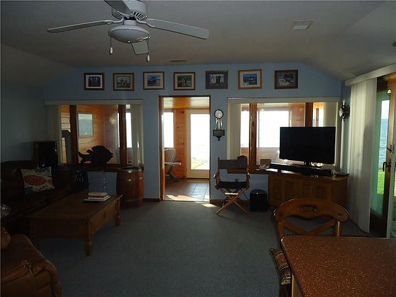Sunrise-Sunset. You will enjoy all life has to offer in this spectacular Lakefront property. This home boasts an open floor plan, updated kitchen with solid surface counter tops and breakfast bar, sunroom with walls of windows and gas stove. Patio and fire pit area. Pull down stairs to the water and more! Ideal lakefront Living!!