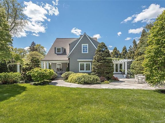 Through a gate at the end of a winding, circular driveway, Bray Cottage at Sasqua Hill comes into view nestled in a lush park-like enclave. A covered bluestone porch frames the entrance of the classic Nantucket shingle-style home, inviting you to pause and breathe in the enchanting, private setting. Once part of the Bray Estate that extended to the shoreline, Bray Cottage has been beautifully updated to maintain its original charm, while infusing modern amenities & sophisticated design. A gracious living room with a gas FP and dining room lined with bookcases form elegant gathering spaces. A gourmet chefs kitchen opens to the family room w/ slate and limestone floors that embraces the essence of indoor/outdoor living with French doors to the deck and pergola draped in climbing hydrangea. A freeform granite terrace anchors the home to the landscape, offering a beautiful space for entertaining under the stars. The great lawn stretches out before you, a pristine setting for celebrations, lawn games or space for a pool. Every room is designed to capture distinctive outdoor vignettes. The home office overlooks the zen garden and the master bedroom enjoys three exposures for sweeping sylvan views and glorious natural light. An expertly-curated collection of specimen trees, including Japanese maples and a wooded glade of hostas and ferns form a private arboretum. Across from Shorehaven Golf Club & minutes from Saugatuck restaurants and train, this is a serene retreat like no other.