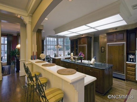 Architect George Stowe designed this custom home for casually elegant living. Large rooms, open and flowing set the scene. Octagonal breakfast room bathed in morning light, secluded master adjoins screened porch. Island kitchen with breakfast bar, guest area, study/office with built-ins, separate family bedroom area, work room with sauna on lower level, fenced yard, lovely terrace. -
