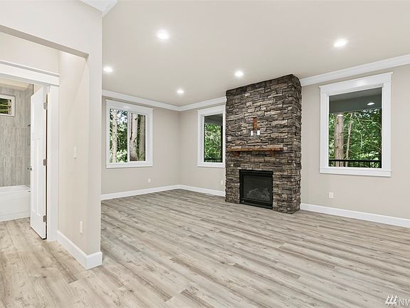 Exquisite brand new luxury home with all the bells & whistles! Construction just completed. Surrounded by a serene greenbelt of forest, yet with plenty of sunlight. Vaulted ceilings, a beautiful rock fireplace, covered deck, & so many great architectural features. Custom crown molding, gorgeous flooring throughout, & a flowing floor plan. Lower level plumbed for a 2nd kitchen. Situated at the end of a dead-end street just minutes from the marina, golf course, & Lake Whatcom beaches.