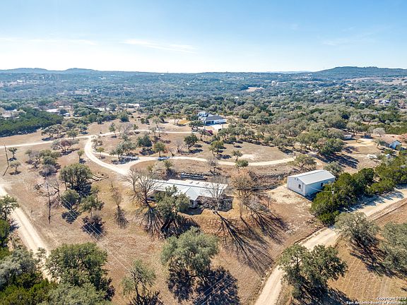 Enjoy the country in a quiet area of Boerne just 4 miles from the Guadalupe River and 4 miles from downtown Boerne. Benefit from the perfect location surrounded by hills, located in Kendall County, but outside of the city limits, which means no city taxes. This fully bricked home with a metal roof hosts 3 large bedrooms, 3 full bathrooms, an office, custom kitchen and two large covered porches. On site you'll also find a 1,500 sq. ft. warehouse situated on a slab, wired for electricity, 95% insulated and equipped with gutters along with a 3,500 gallon rain storage tank. Wildlife exemption available after building history with bees. Additional access point is possible. If hill country living is what you're looking to enjoy, look no further! Restrictions: no mobile homes, commercial use, swine or junk accumulation.