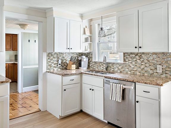 Classic details compliment this unique single family offering with modern finishes moments from the East Weymouth Commuter Rail Station. The main living level offers an updated kitchen featuring shaker style cabinets, granite counters, stainless steel appliances, a fabulous vaulted wood beamed living room with custom built-ins that overlook the fenced backyard with patio, perfect for enjoying the warmer months ahead with family and friends. The dining room features the original fireplace mantel and is flanked by both the main bedroom with double walk in closets and also a office with glass french doors creating the perfect setting to work from home. Located on the second level of the home are two large bedrooms with oversized closets and great natural light. This home also offers a first floor laundry room/pantry, Central AC/Heat, a 1 car garage. Minutes to the Hingham Shipyard, Derby Street, local conservation land with trails, and easy access to major highways and routes.
