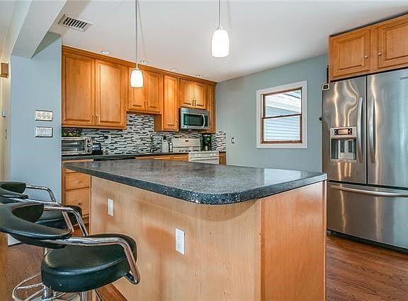 Come see your beautiful dream home, well maintained high ranch with garage in historic Tappan. Not your cookie cutter raised ranch. This home has many improvements and updates including an amazing master suite addition in 2015. This home has an open kitchen with large island. Sliding door opens up to large deck and fenced in yard great for entertaining. Down stairs boasts great entertainment area with gas fireplace and large guest suite with high- end bathroom. The home also has roof solar panels that help lower electric bills. Taxes 12997 and after basic star $11,872. New roof 2015, New central air 2017, New Furnace 2013, New Siding 2016!