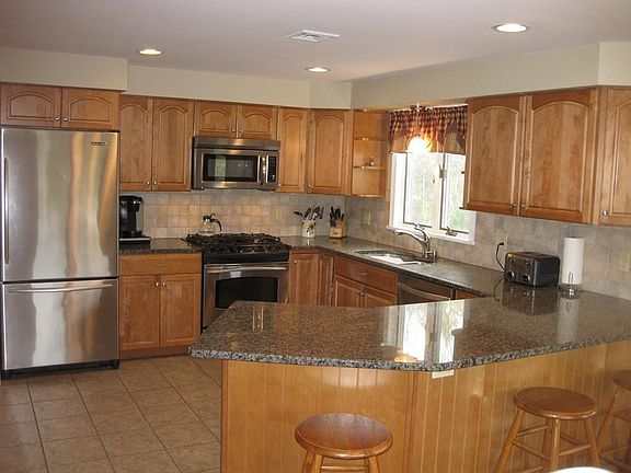 Custom Built Lofted Raised Ranch w/ lower level In-Law. MBR suite w/slider to balcony, large walk-in closet w/built-ins and organizer. Master Bath w/tiled whirlpool tub and sep walk-in shower. Updated mainlevel kitchen w/SS appliances, granite beveled edge counters, recessed lights, gas stove, breakfast bar w/stools, dble bowl ss sinks. New carpet in MBR and Loft FR. Sep laundry rm on main level w/cabinets and sink.central a/c on main level and 2nd floor. main level Fam rm has wall a/c unit, updated baths w/granite countertops. 2-story Liv Rm w/stone fireplace and vaulted ceiling and wood floor. Lower level in-law with liv rm. large eat-in kitchen, bdrm. full bath, Family rm and sep laundry room. In-law is a walk-out to patio. Andersen windows. radiant heat in LL FR and FR off main level kitchen. Professionally landscaped grounds w/in-ground gunite pool, pool shed. circular driveway, 1 car garage under.