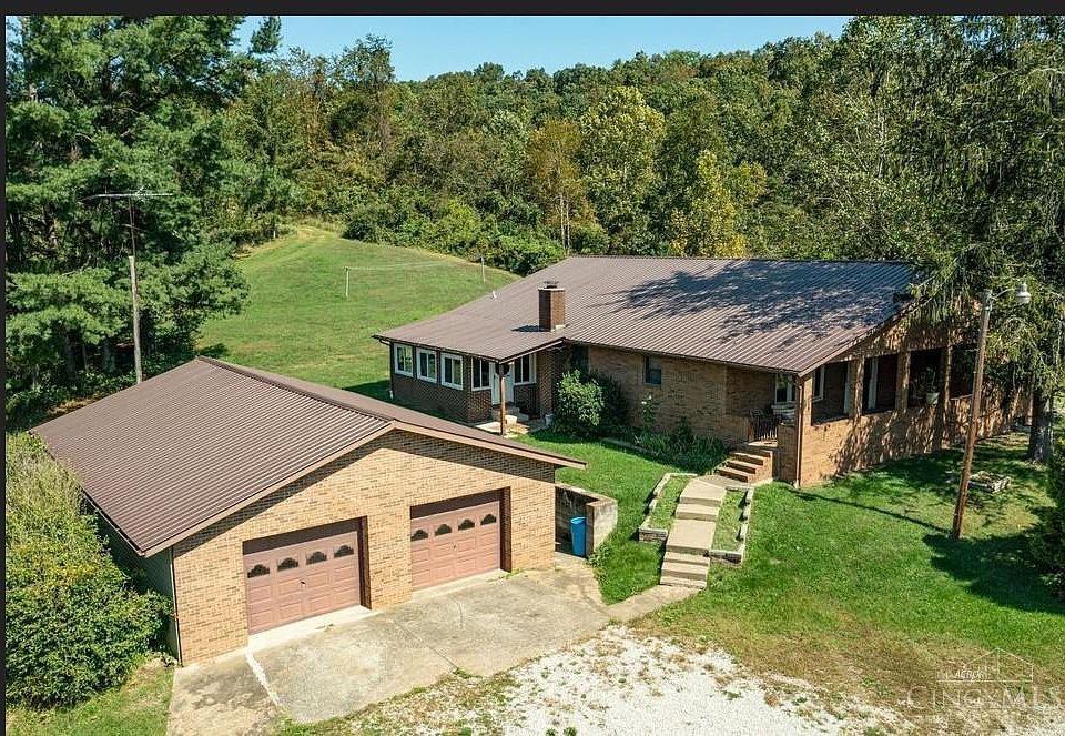 Built in 1987, this 2/3 brick homestead comes with a brick, 2 car detached garage. Sitting on 33 acres (survey will be needed prior to closing), you will have peace of mind, nature including deer and turkey in your backyard, away from the traffic jams, rush and go lifestyle. The home has septic, natural gas heating, a wood stove (will need inspecting) and a water softener system. The basement is over 2,000 sq feet with kitchen and bathroom. A one acre flat across the road included with storage shed. Mature trees. Shopping/amenities all within 15-20 miles. Including the local airport. Portsmouth,Oh is a quick drive for more options and Huntington,WV is the same distance for even more options. 15 minutes to the hospital. 3 parks nearby within 30 minutes. Excellent opportunity to have the room to roam or in a tree stand. A property like this in today's market is hard to come by