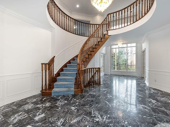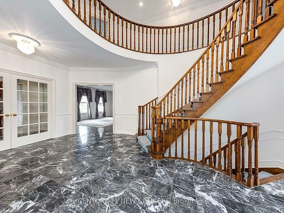 magnificent 5 bedroom plus a den family home, custom built by renowned Wycliffe Homes on a quiet and children safe Cul-de-sec, 521O sq. above grade (as per MPAC)original owners, great location (steps to 16th Ave and Spadina Rd)., large size pie shaped lot (see attached copy of survey), expansive backyard with mature tall trees, centre hall with grand circular oak stairs and a chandelier, 2nd floor : primary bedroom with walk-in closet, mirrored double closet and huge 5 pc en-suite bath with jacuzzi tub, great size bedrooms and a den, Main/Ground floor: huge gourmet kitchen with KitchenAid stainless steel appliances including gas stove ,large centre Island and breakfast Area leading to backyard deck, formal dining room with wood-burning fireplace and living room, office/den with built/in wooden bookcases and shelves, crown moulded ceilings, , family room with wood burning fireplace, this home is waiting for you to design your dream plan including full size basement with separate entrance, right across to shopping plaza, restaurants, stores, close to parks to top-ranking private & public Schools, major Highways, transit & amenities.