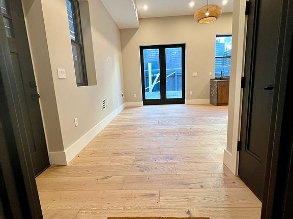 WELCOME HOME. This tastefully designed duplex offers a perfect blend of style and functionality, making it ideal for modern living. Featuring 8ft glass doors that open to your secluded backyard oasis, this space expands your living area for the ultimate outdoor entertainment experience. The lower level boasts stunning 11ft ceilings, wide plank hardwood floors, half bath, and an open concept layout that seamlessly connects the living room, dining area, and kitchen perfect for hosting guests or enjoying quiet nights at home. The primary suite is a true retreat, offering 10ft ceilings, a dual vanity spa styled bath with a Walk in Shower, a large walk-in closet, and room for a designated home office or lounge area. Upstairs also features the convenience of a laundry area off the hall. With central air and heat, and private walkway/entrance into the unit, comfort and privacy are top priorities. Located just off Central Avenue, you'll enjoy proximity to shopping, retail, and quick access to NYC transit or a short stroll to the Hoboken and the Light Rail. Don't miss your chance to live in this beautiful and functional space schedule your viewing today!
