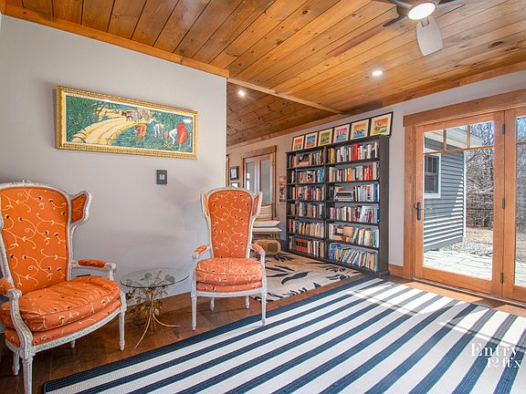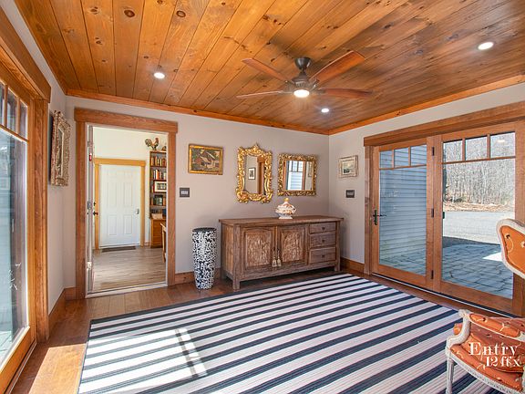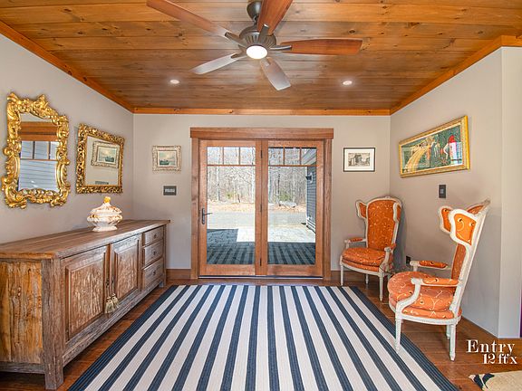 Architecturally rich and beautifully sited on 7.63 private acres in Readfield with panoramic views of Maine's western foothills, this distinctive single-level home offers a holistic balance among craftsmanship, comfort, and enduring design. Soaring cathedral ceilings and radiant heat floors create a spacious, inviting atmosphere anchored by a striking stone fireplace. Throughout, reclaimed and locally sourced wood is skillfully integrated—from pine ceilings and custom millwork to solid wood doors, hand-built trim, and Marvin tilt-to-clean energy-efficient windows. The open-concept kitchen pairs soft-finish black cabinetry (2025) with granite countertops, a large pantry, and Bosch and KitchenAid stainless appliances (2024). Cabinetry features soft-close doors and interior drawers. The primary suite offers generous proportions, wooded views, his-and-hers walk-in closets, and a fabulous bath with double sinks and a tiled walk-in shower. A second bedroom and full second bath provide comfort and privacy in their own wing. A bonus room—currently used as a family room/library/art gallery—is flexible space that could serve as a third bedroom or studio. A heated 2-car garage with high ceilings and direct entry offers tremendous storage, complemented by a detached garage/barn ideal for workshop or gear. Outdoors, enjoy open lawn, fenced areas, and surrounding forest for gardening, play, or entertaining. Additional features include a dedicated laundry/exercise room, gallery-style hallway, and fenced pet area. Maranacook Lake with its private residents-only beach is nearby, along with trails for year-round recreation. The property is 10 minutes from Manchester, 15 minutes to Augusta and I-95. Improvements from 2023-2025 include a Generac generator, Aerus water system, solid wood doors, fresh paint, high-end appliances, solid brass hardware, lighting, gutters, resurfaced driveway, and more. Pride of ownership shines throughout this rare offering