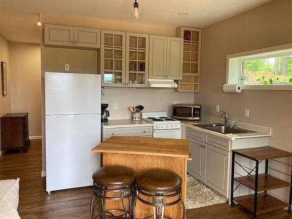 FURNISHED, PRIVATE, 1 BR apartment for rent on a month-to-month basis (new construction) kitchen w/full-size fridge, microwave, dishes, utensils, cook plate, pans, kitchen table w/2 stools coffee pot, dresser, oven high quality full-sized bed, love seat and side chair, tv full bath w/shower, washer/dryer wall-mounted smart tv (you set up wifi) 20+ mile views Details: no pets (a dog lives on the premises) no smoking Suitable for 1 person, with off-street parking for 1 VEHICLE ONLY. Ideal for a professional person or student. 20 minutes to downtown Asheville. If the ad is visible, the unit is available. Qualifications: Must pass both a criminal background check, and a credit check. Requires a credit score of at least 650, and a gross monthly income of at least 3x the rent. 1st and last month's rent plus damage deposit = $2700 to get in. Rent INCLUDES heat/air, electric and water/sewer and trash/recycle. 6-month lease to start, then month-to-month. Serious inquiries only.