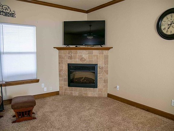 Come see this beautiful home on a corner lot. This home also comes with 2 lots for a total of 1 acre. In this home you will find 3 bedrooms, 2 full baths and a 2 car garage. Also included is an electric fireplace and large living area. The primary bath has a whirlpool tub as well as a separate shower, 2 sinks and lots of tile. The kitchen has stainless steel appliances, granite countertops, and an island. To see this home or for more information, call or text Bo Cole at 580-483-8332.
